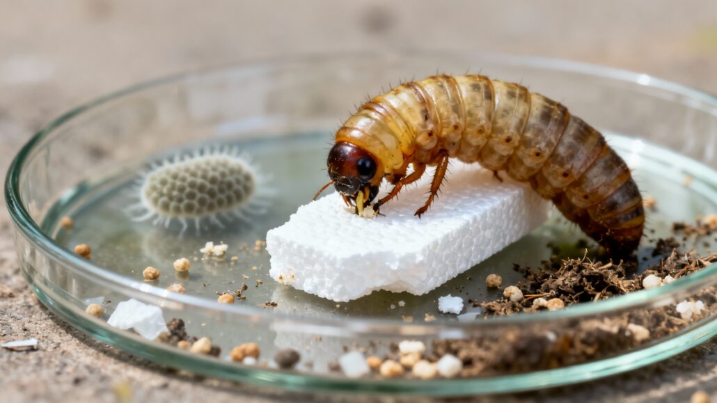 • El gusano como procesador mecánico: El Tenebrio molitor actúa como un sistema de pre-tratamiento, triturando el plástico y creando el ambiente anaeróbico perfecto para que las bacterias intestinales trabajen con máxima eficiencia.