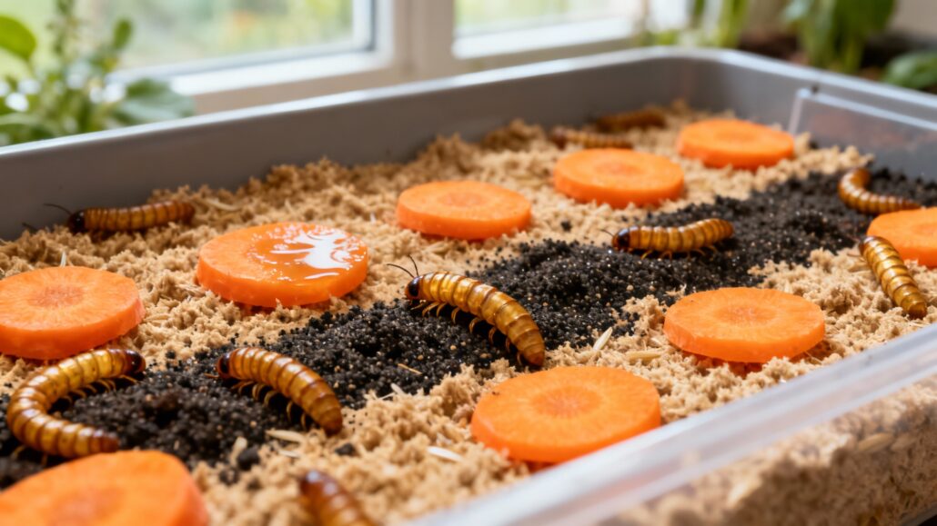 - Colonia inicial: Puedes comprar gusanos de la harina en tiendas de mascotas, de artículos de pesca o, preferiblemente, a través de criadores en línea especializados que aseguran colonias sanas y libres de parásitos.