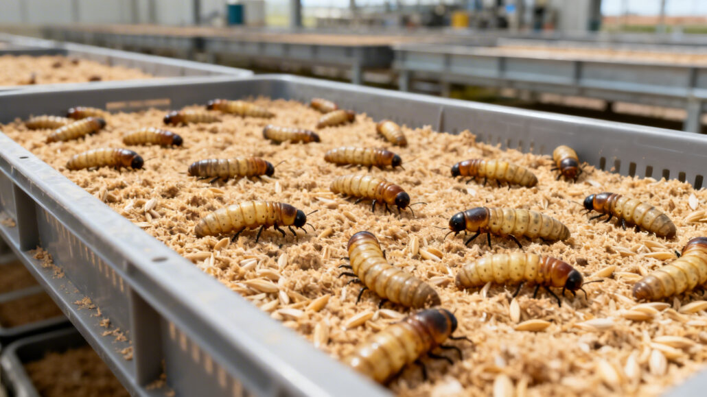 Una de las ventajas más potentes del Tenebrio molitor es su capacidad para el upcycling. Estas larvas pueden alimentarse de subproductos agroindustriales, como el salvado de trigo, el bagazo de cerveza o restos de panadería, transformando lo que antes era un residuo de bajo valor o un coste de gestión en biomasa rica en nutrientes.